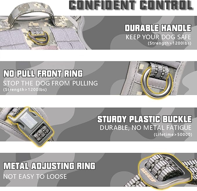 Auroth Tactical Dog Training Harness No Pulling Front Clip Leash Adhesion Reflective K9 Pet Working Vest Easy Control for Small Medium Large Dogs Grey Camo L