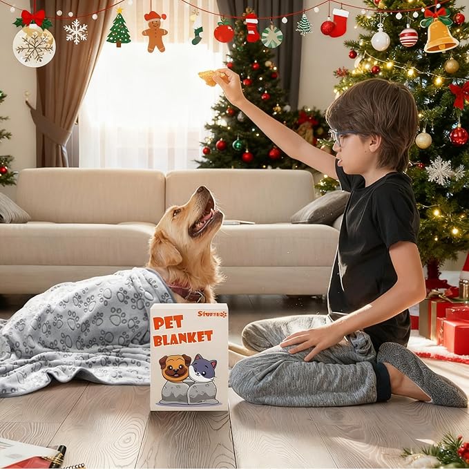 Stuffed® Premium Soft Dog Blanket Washable, 40"x32" Cat Blanket for Indoor Cats Large Medium Small Dog Puppy Essentials (Grey)