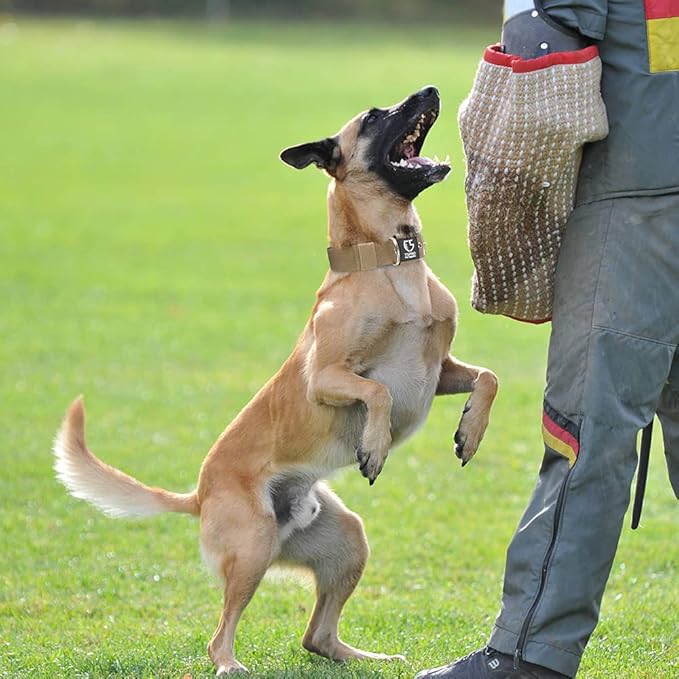 TSPRO Tactical Dog Collar 1.5 Inch Wide Thick Dog Collars with Heavy Duty Metal Buckle, Durable, Strong, Adjustable for Medium to Large Dogs (Khaki M)