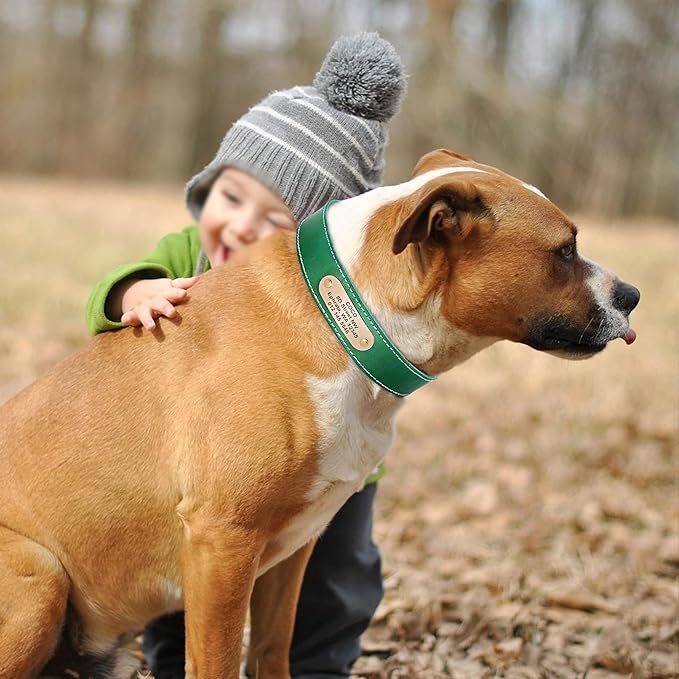 Didog Genuine Leather Dog Collars with Engraved Nameplate, Personalized Soft Leather Dog Collar with Custom ID Tag, Brown/Green/Red for Small Dogs (S,Green)