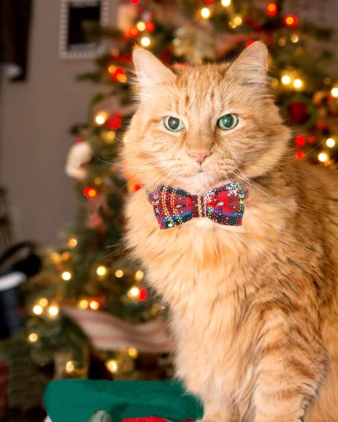 Joytale Upgraded Christmas Cat Collar with Bells, Breakaway Cat Collars with Bow Tie, 1 Pack Girl Boy Safety Plaid Kitten Collars, Christmas Red