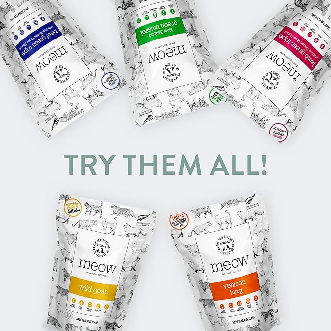 The New Zealand Natural Pet Food Co MEOW Freeze Dried Cat Treats - Lamb Green Tripe with New Zealand Green Mussel, High Protein, Healthy Cat Snacks and Toppers, All Natural for all Life Stages, 1.4 oz