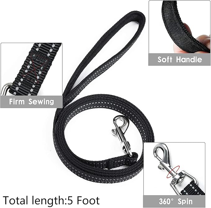 - 【Latest Reflective Design】The dog harness with 360-degree All-Over Reflective strip design, the leash is extended length (5 FT) with also have reflective effect, this harness and leash set makes your pet be visible at night, more easy control and safety