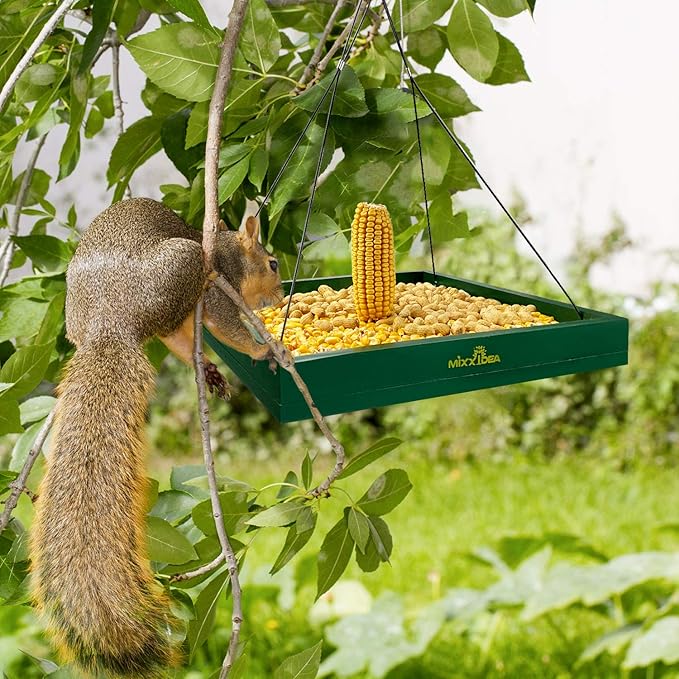 - Strong Framing Bird Feeder Tray with Free Nails : The double layers of the bird feeder tray are very strong and sturdy for food weight. You can store enough seeds to be fed for a month or so. Also, the nails provided with the tray will be very useful for you to prepare corn for squirrels. You can easily adjust the nails with the length you want for the corn preparation for your lovely squirrels