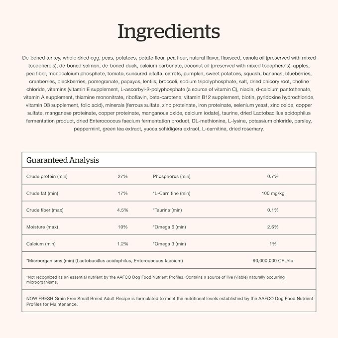 Now Fresh Grain-Free Small Breed Dry Dog Food with Turkey, Salmon & Duck, Healthy Kibble for Adults Made with Real Meat & Fish, Chicken-Free Recipe, Pumpkin & Probiotics for Good Digestion, 22 lb Bag