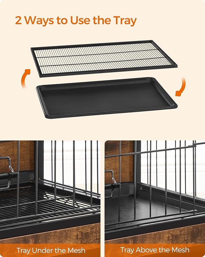 - [2 Ways to Use the Tray] Put the tray under the bottom mesh to catch crumbs, fur, and dirt, keeping your dog's place clean without dirtying your floor, or place the tray above the mesh to offer your dog a flat, comfortable surface—it's up to you
