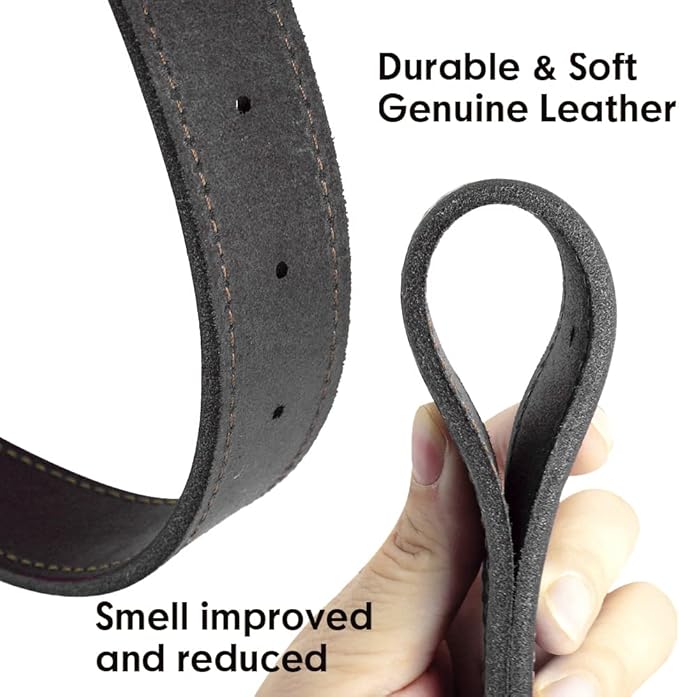 - Strong & Durable Buckle - Quantity solid alloy buckle and a heavy duty D ring for leash attachment. Simple but classy design, timeless and fit all season. Durable genuine leather 5ft dog leash, soft and sturdy, with 360Β° Tangle-free durable rustproof swivel hook and heavy duty O ring great for daily walking