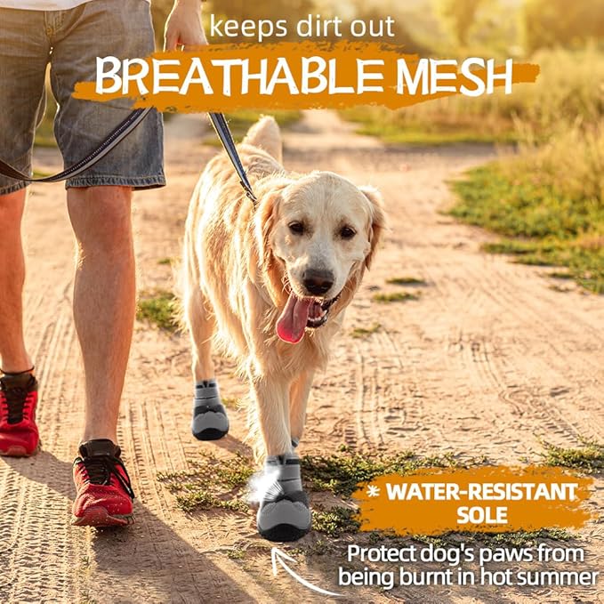 - Anti-Slip Boots for Dogs : Dog booties are soft and breathable to paws, doggy shoes effectively protect dog claws from heat, stones, glass. Wearing our doggy shoes not only enables our puppy to walk happily on hot pavement, but also protects the weak paws from snow, ice, rain during winter