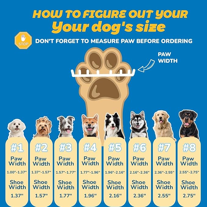 - Anti-Slip Boots for Dogs : Dog booties are soft and breathable to paws, doggy shoes effectively protect dog claws from heat, stones, glass. Wearing our doggy shoes not only enables our puppy to walk happily on hot pavement, but also protects the weak paws from snow, ice, rain during winter