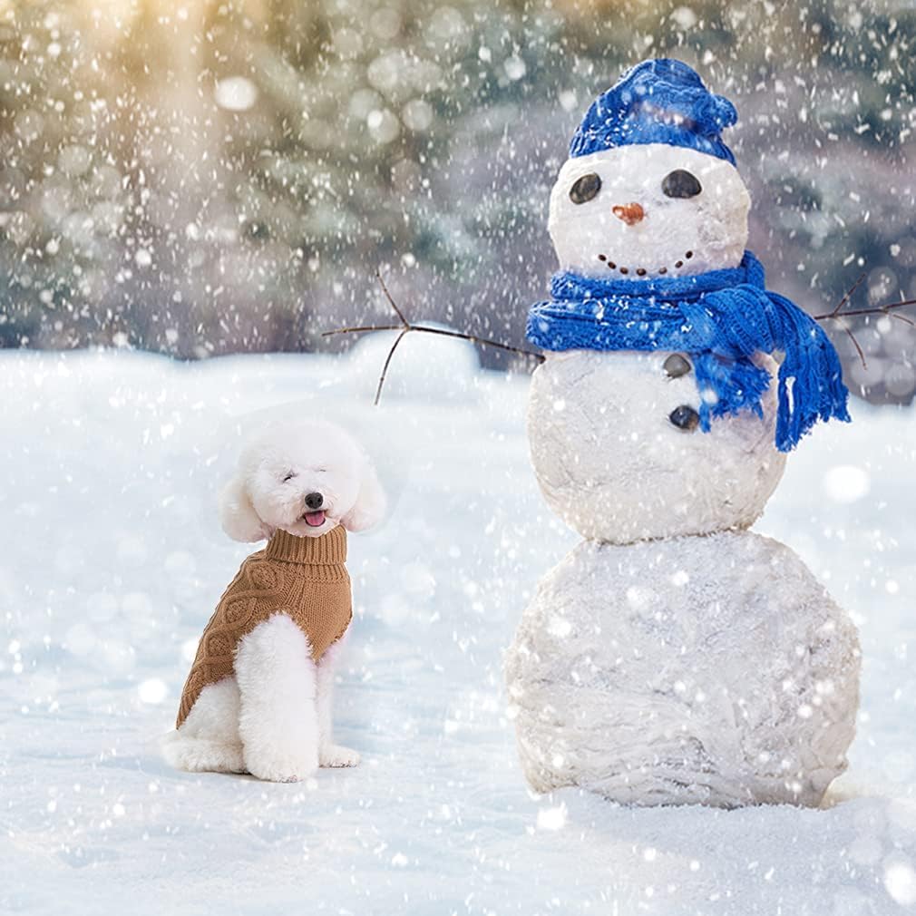BINGPET Thermal Knitted Dog Sweater for Small Medium Large Dogs,Winter Dog Cat Coat Warm Sweartershirts Outfits,Classic Cable Knit Turtleneck Pullover Dog Jumper Coat Warm Sweartershirts