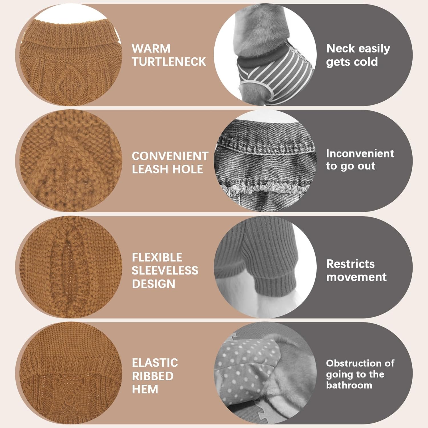 • 【Fashionably Warm】Our sleeveless dog sweater features a classic turtleneck design, keeping your furry friend stylish and cozy. The soft touch ensures ultimate comfort for your pet.