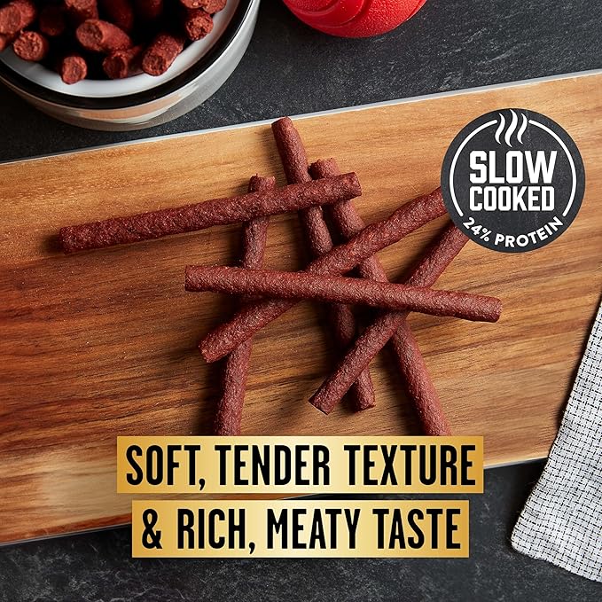 - Slow cooked for a tender texture and rich, meaty taste your dog will love