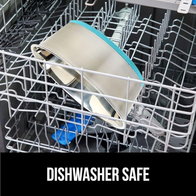 GORILLA GRIP Set of 2 Dog Bowls, Holds 6 Cups (48 fl oz), Heavy Duty Metal Food and Water Bowl for Feeding Dogs and Cats, Dishwasher Safe Rust Resistant Stainless Steel, BPA Free Rubber Base Turquoise