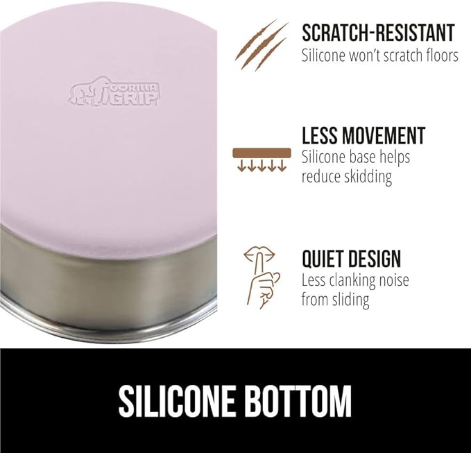 - SILICONE BOTTOM: the Gorilla Grip bowl is constructed from durable silicone that helps keep the bowl steady and wonβt scratch your floors; while some over eager eaters may still be able to slide the bowls, the silicone will help prevent much movement; plus, it reduces the noise from clanking and sliding across wood, tile, and more