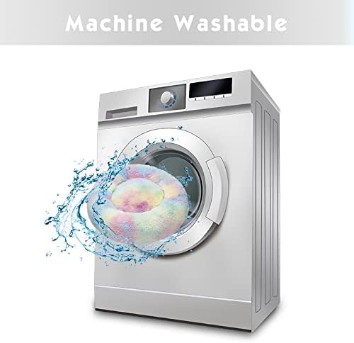 Anti Anxiety Round Fluffy Plush Faux Fur Warm Washable Dog Bed & Cat Bed, Original Bed for Small Medium Large Pets,Used to Relieve Joints and Improve Sleep(20"/24"/27'') (24", Rainbow)
