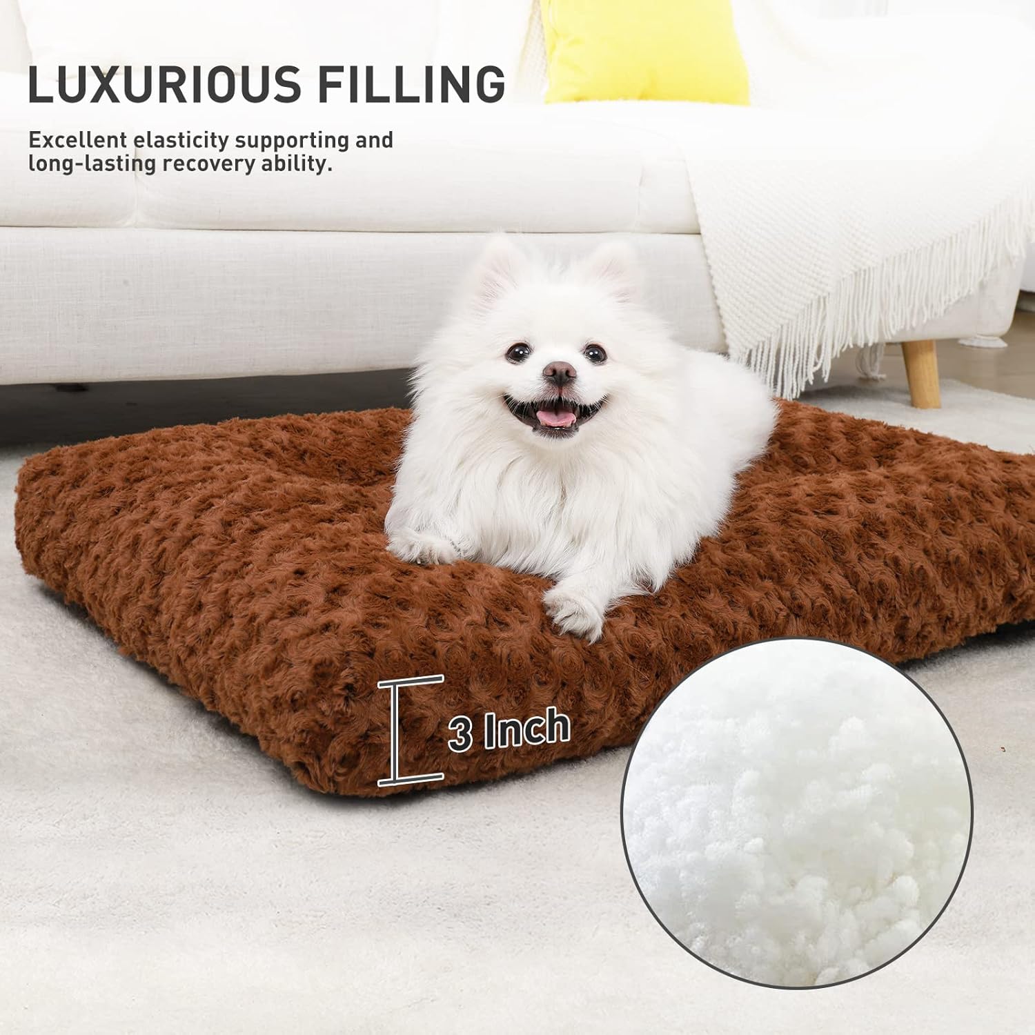 - Luxurious Padding Support - Filled with 3" premium polypropylene fiber through 6 keyhole fixation, excellent elasticity supporting and long-lasting recovery ability, effectively comforts dogs with strong supports to bony and joint areas, pressure relief, relieve joint pain, body aches, arthritis.
