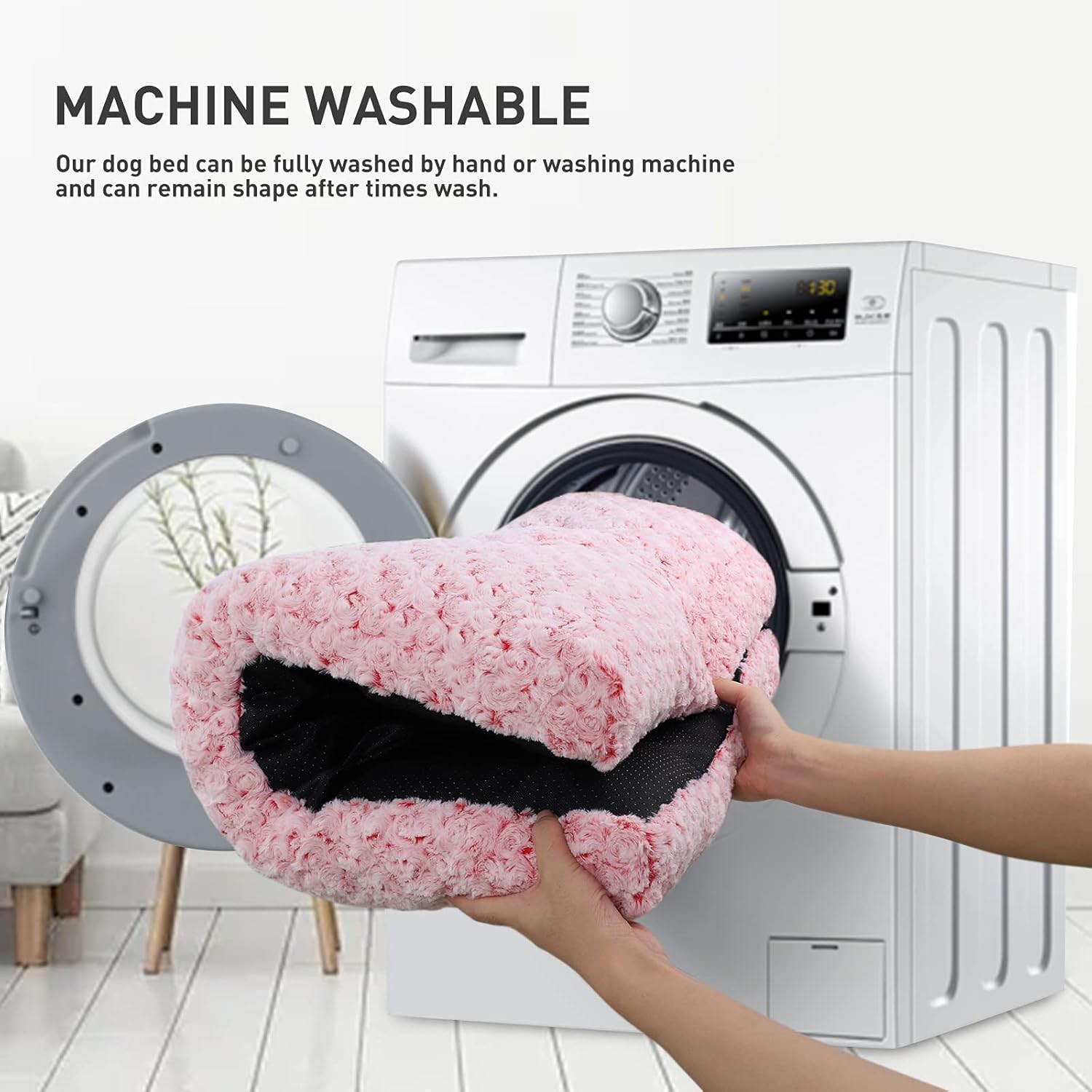 KSIIA Washable Dog Bed Deluxe Plush Dog Crate Beds Comfy Kennel Pad Anti-Slip Pet Sleeping Mat for Large, Jumbo, Medium, Small Dogs Breeds, 29" x 21", Pink
