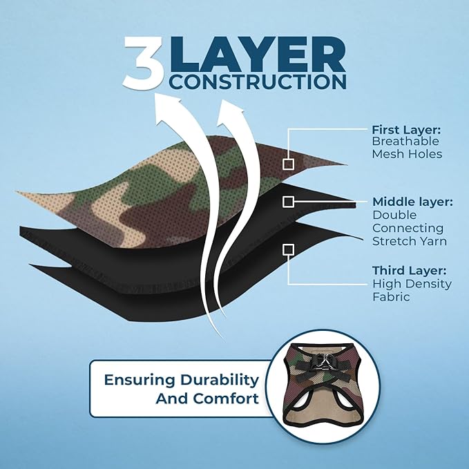 - ALL WEATHER MESH: Made with a soft, breathable air mesh, this lightweight pet harness is perfect for walks all year round.