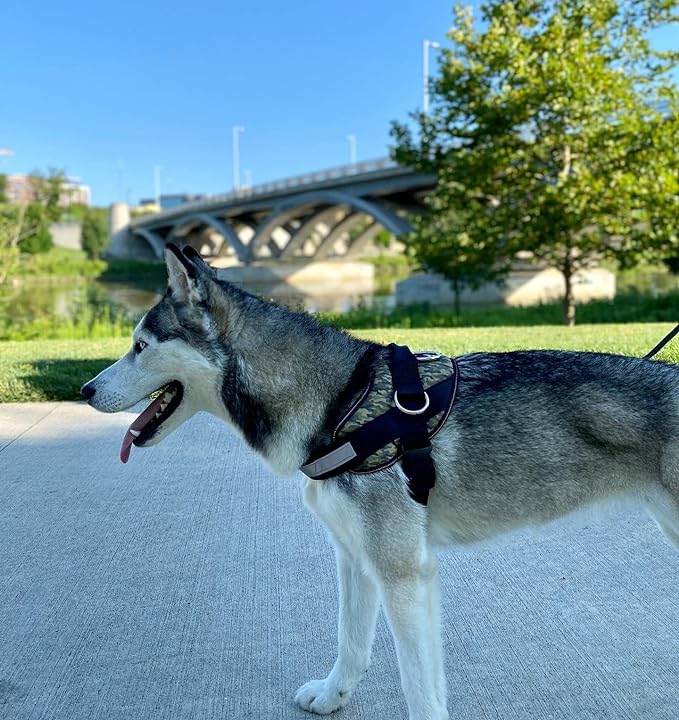 ShawnCo Essential Dog Harness, No-Pull Pet Vest with 3 Leash Clips, No Choke, Reflective, Adjustable and Padded, for Easy Walking and Training for Small, Medium and Large Dogs (Military Camo, XS)