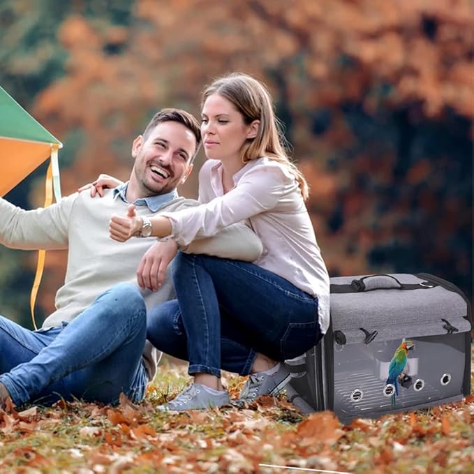 - 【PORTABLE & LIGHTWEIGHT】Suertree bird travel carrier is made of ultra light material, which makes it easy to carry. It can be carried by handle or hung on shoulder when going out. In addition, the bird cage can be tied to the car seat with a safety belt to ensure the safety of birds when driving.