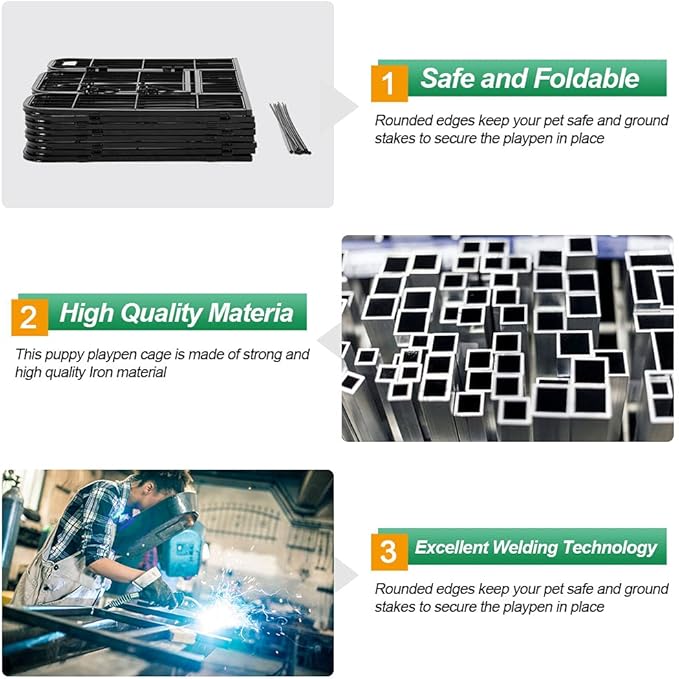 - DURABLE METAL FENCE PANELS: Heavy-duty iron with a rust-resistant finish makes this fence strong and secure. Use the sturdy fence panels as a dog fence outdoor for yard or indoor setup.