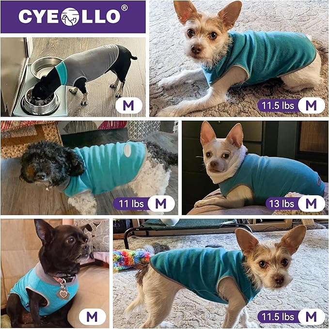 cyeollo 2 Pack Dog Sweatshirts Fleece Jacket with Reflective Stripe Pullover Stretchy Doggie Sweater Soft Pet Clothes Lightweight Dog Sweaters for Small Dogs Turquoise & Grey