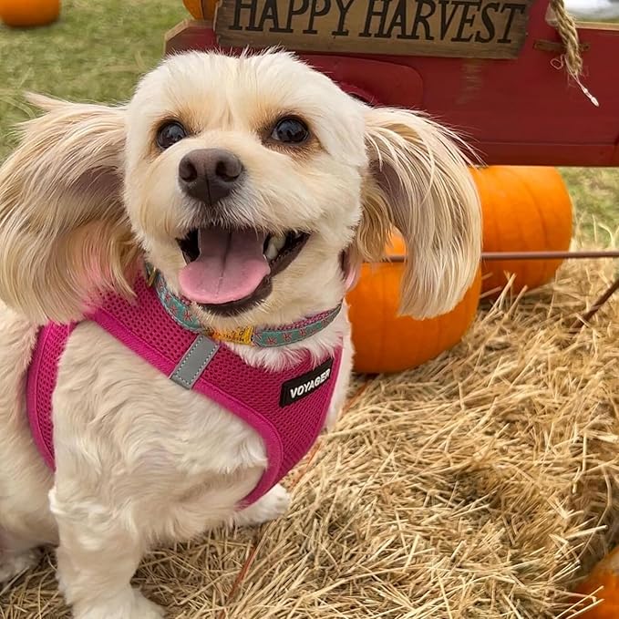 Voyager Step-in Air All Weather Mesh Harness and Reflective Dog 5 ft Leash Combo with Neoprene Handle, for Small, Medium and Large Breed Puppies by Best Pet Supplies - Set (Fuchsia), S