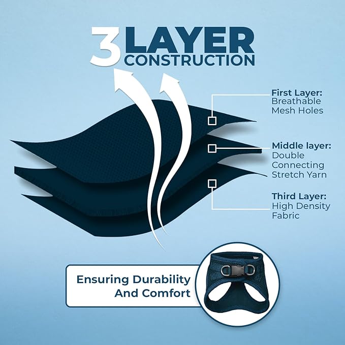 - ALL WEATHER MESH: Made with a soft, breathable air mesh, this lightweight pet harness is perfect for walks all year round.