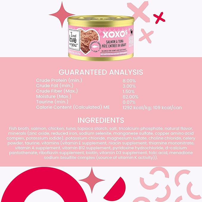 I and love and you XOXOs Wet Cat Food - Salmon + Tuna Pâté - Grain Free, Filler Free, 3oz Pack of 24 Cans