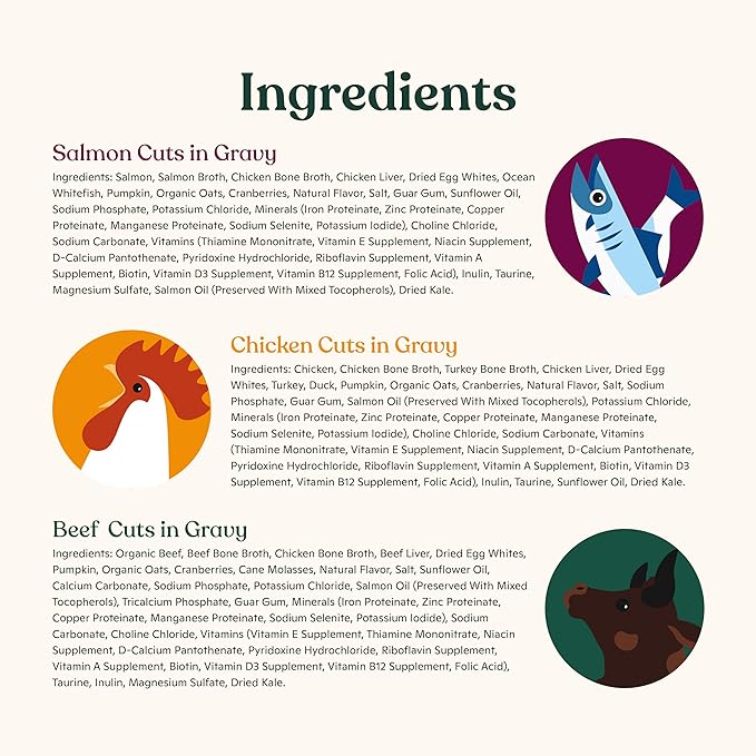 - Variety Pack: Enjoy 12 delicious flavors in one pack, featuring Cage-Free Chicken, Sustainably Caught Salmon, and Grass-Fed Beef with Bone Broth