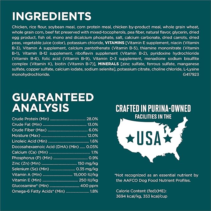 - Crafted in Purina-owned, U.S. facilities with a SmartBlend of high-quality ingredients, including omega-6 fatty acids, vitamins and minerals to support a shiny coat and healthy skin