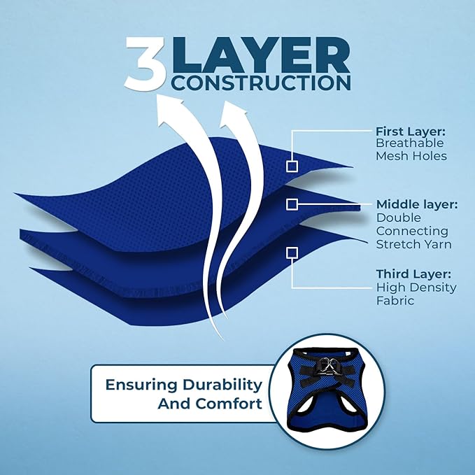 - ALL WEATHER MESH: Made with a soft, breathable air mesh, this lightweight pet harness is perfect for walks all year round.