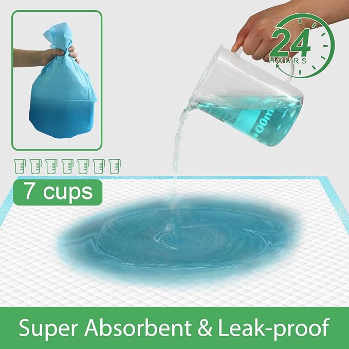 - 💝【Leak-proof Protection to Keep Your Home Clean】Each of large dog potty pads features the new upgraded plastic backing (thickened PE film) which is much more leak-proof, tear-resistant, and durable than most pet training pads in the market as the last-layer of the puppy pads. It can protect your floors, carpets, sofas, chairs, mattresses, beds, etc. from the urine damage by blocking leaks. It holds up to 7 cups of liquid.