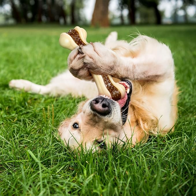 - Bone Shape Design: the realistic bone shape makes your pet easy to recognize, establishes a positive connection with the dog toy, and reduces their anxiety and boredom; Interesting and curved design makes it easy for dogs to hold and chew; These toys are also infused with beef flavoring, you can put pumpkin puree, and mashed potatoes on the toy as well to make them appealing to your dog