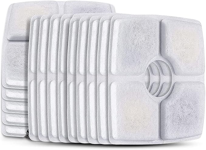 Cat Water Fountain Filters, 16 Pack Replacement Filter Fit for Top Square 84oz/2.5L Cat Pet Fountain, 3 Filtration System.Not compatible with 95oz/2.8L Pet Fountain