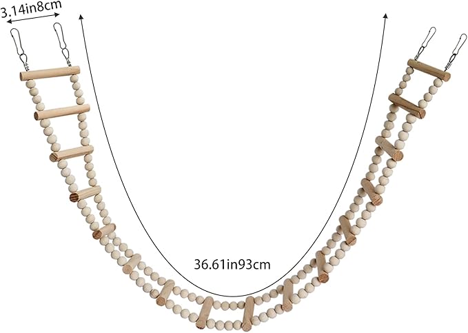 - 🦜【Easy to Install】: The total length of this ladder is about 36 inches, the total is about 0.4 pounds, and there are two metal buckles at both ends, which can be easily and safely installed anywhere. Our small animal bending bridge is not only suitable for all kinds of small animal cages but also suitable for hanging in the garden woods for birds, squirrels, and other small animals to play and stand.