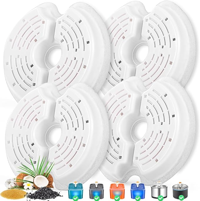 Cat Water Fountain Filters for 84oz/2.5L Stainless Steel Pet Fountain and 67oz/2.0L Plastic Cat Drinking Fountain, 4 Pack Pet Replacement Filters Set
