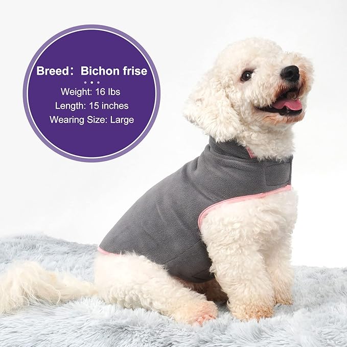 - ADJUSTABLE STRAP: The dog winter coat is designed with adjustable strap on the neck and chest, making it easy to put on and take off. This fleece coat is in classic fashionable colors will make your pet attractive in cold weather days