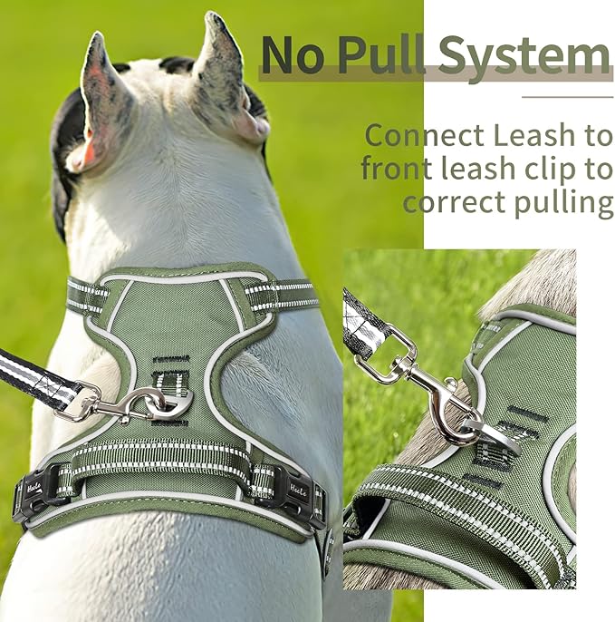 HEELE Dog Harness, Dog Harness for Small Medium Large Dogs No Pull Adjustable Padded Reflective Harness with Handle for Walking Training, Green, S