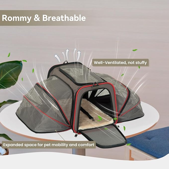 Petsfit Expandable Cat Dog Carrier for 2 Cats, 19" Lx 12" Wx 12" H Soft-Sided Portable Pet Carrier for Travel, Dog Carrier for Small Dog with 2 Side Extensions, Anti-Escape