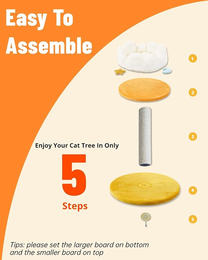 - 【Tip-Proof Base】Sturdy engineered wood base stays rooted during wild kitten zoomies. The soft plush covering is gentle on your cat's skin, providing a cozy place for relaxation.