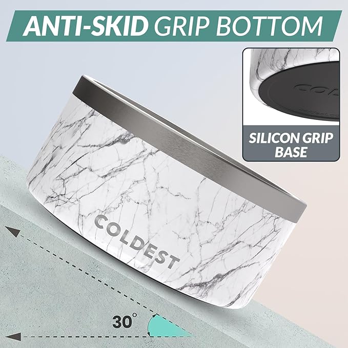Coldest Dog Bowl - Anti Rust Metal, Non Slip, 3 Layers Insulated Stainless Steel Dog Bowls - Spill Proof & Heavy Duty - Water Bowl for Dogs, Cats & Pets, Dish Washer Safe (200 oz, Carrara Marble)