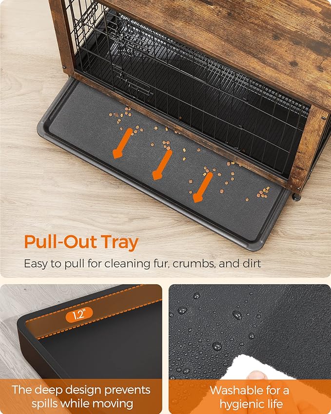 - [Sturdy and Chew-Resistant] Made with durable particleboard and steel, this piece of dog furniture is sturdier and more chew-resistant than wooden dog crates, offering a lasting, stable, and safe retreat for your fur friend