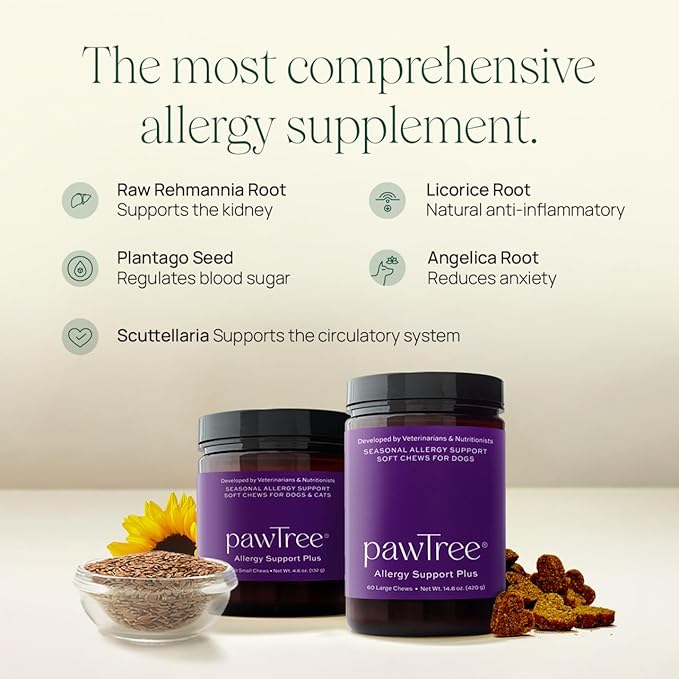pawTree Natural Allergy Support Plus for Dogs-Ideal for Itching, Irritated Skin, Seasonal and Food Allergies, Hot Spots. Supplement Your pet Will Love. Small Chews for Pets - 60 Count (Small)