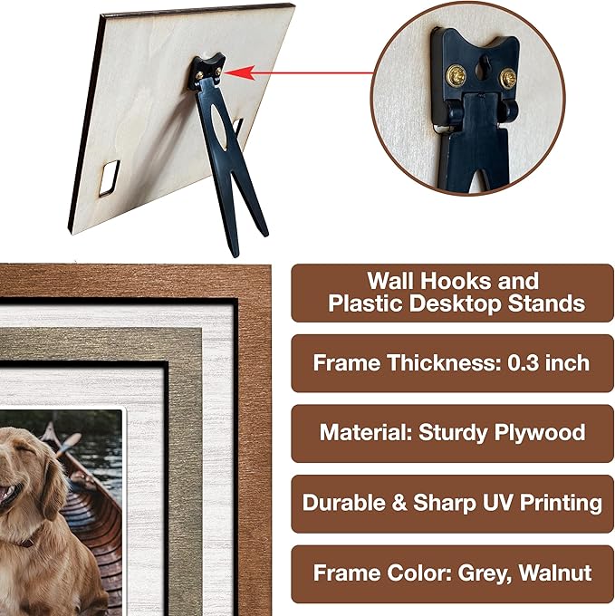 - HIGH-QUALITY MATERIAL: The dog collar picture frame for dog lovers is made of sturdy Plywood. Furthermore, we have two frame colors to choose from: grey and walnut. Having a beautiful keepsake to look at every day can help to alleviate some of the pain. Please keep in mind that the pet collar is NOT included.