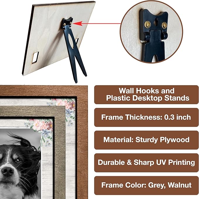 - HIGH-QUALITY MATERIAL: The dog collar picture frame for dog lovers is made of sturdy Plywood. Furthermore, we have two frame colors to choose from: grey and walnut. Having a beautiful keepsake to look at every day can help to alleviate some of the pain. Please keep in mind that the pet collar is NOT included.