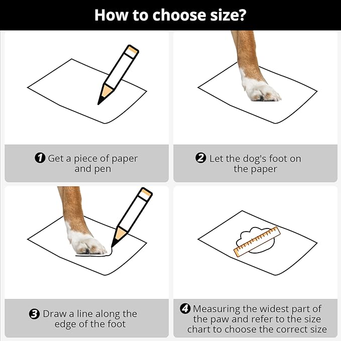 - 【Size 7】: 2.75''x3.15''(W*L).for 66-90(lbs).Great for all kinds of dogs.Place your pet's paws on paper; Mark the width of the paws, including the toes and nails,Except for the hair;Please refer to the picture size chart to choose the right size for your puppy.