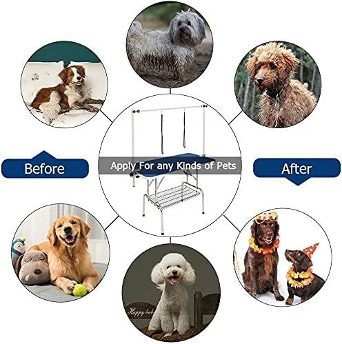 - 🐶Stable pet beauty table: There are four pieces of metal bracings for connecting and supporting the tabletop and table legs firmly. The metal connecting part forms a triangle shape to provide much stability for the table. The max load-bearing capacity of the table is 330lb. Table size: L42'' x W24''.