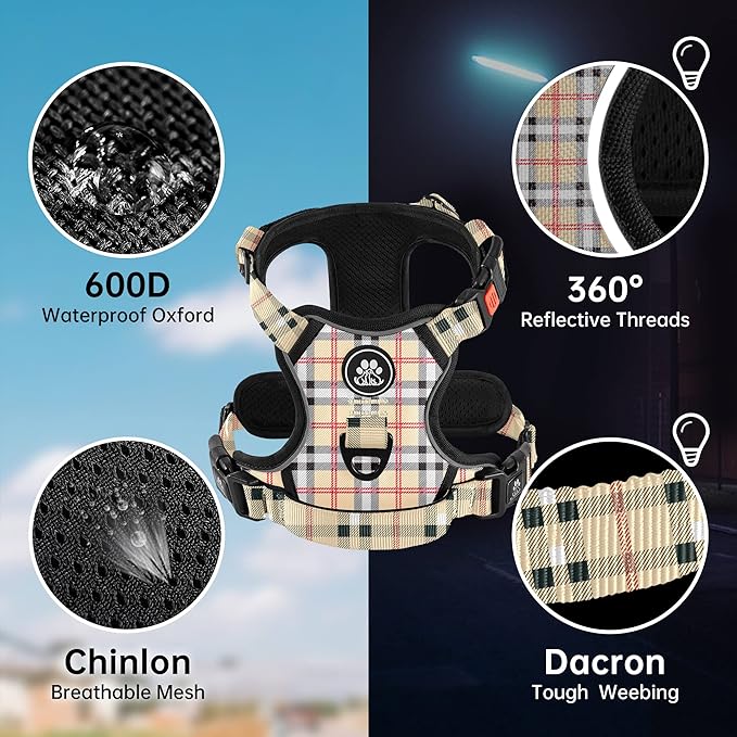 NESTROAD No Pull Dog Harness with Leash, Reflective No Choke Pet Vest Harness,Adjustable Soft Padded Dog Harness with Easy Control Handle for Large Dogs(Checkered Beige,X-Large)