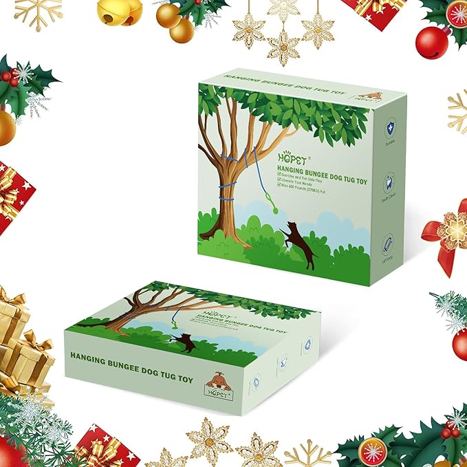 - 🎄【EASY TO HANG & ADJUSTABLE】16ft long dog rope toys for large dogs, and you can toss the bungee cord over the strong tree limb, loop it, and pull it. Of course, you can also hang the dog toys for aggressive chewers from a tree branch, wood beam, patio, and other things that have some height for support. You can adjust the height of the dog rope toys to make this interactive spring pole toy more challenging for your furry friends